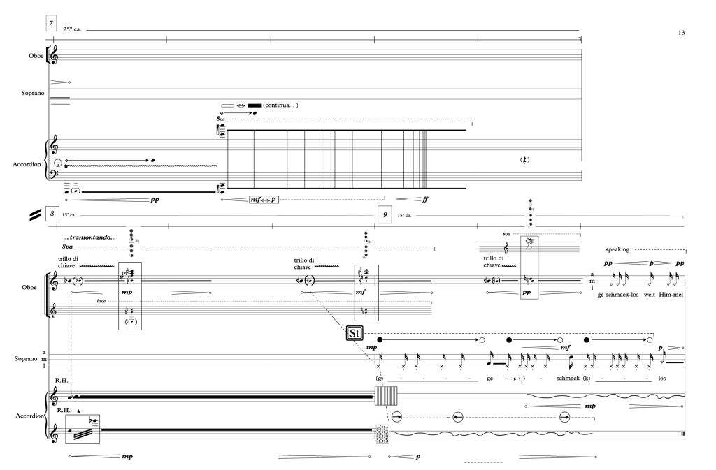 Different elements enter into a dialogue. They merge, expand, stretch, and converge, emerging and disappearing again, weaving secret frictions between them and moving with different temporalities in a flexible and organic narrative. On a technical level, the timbre of each individual instrument and the combinations between them are explored, seeking to defamiliarize the performance and giving great importance to expressiveness and character.