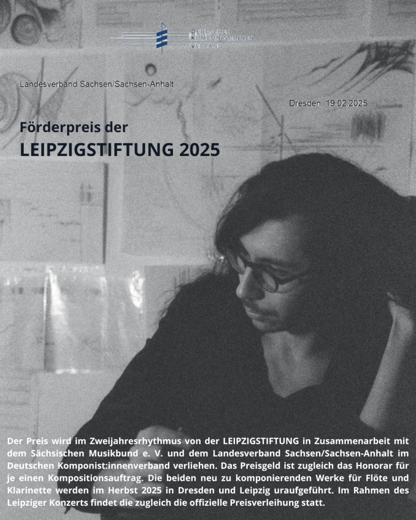 Prize-awarded commission for flute and clarinet, organised by the Sächsischer Musikbund e. V. in collaboration with the Deutscher Komponist:innenverband, funded by the LEIPZIGSTIFTUNG.