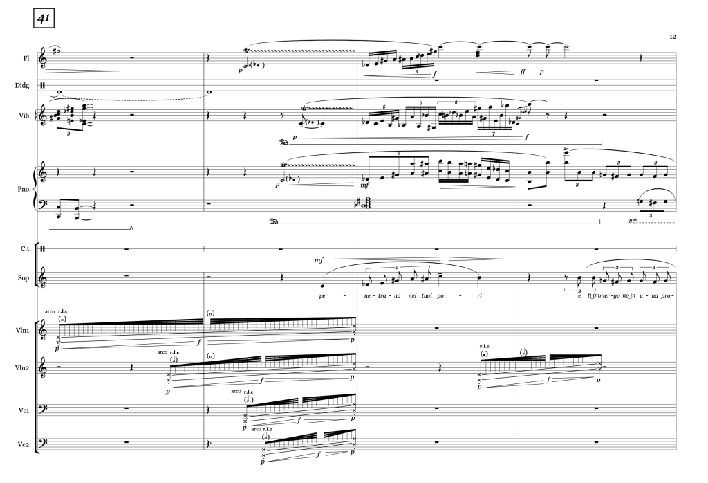 instrumentation: flute, trombone – didgeridoo, vibraphone, piano, tibetan bell in Eb, soprano, 2 violins, 2 cellos